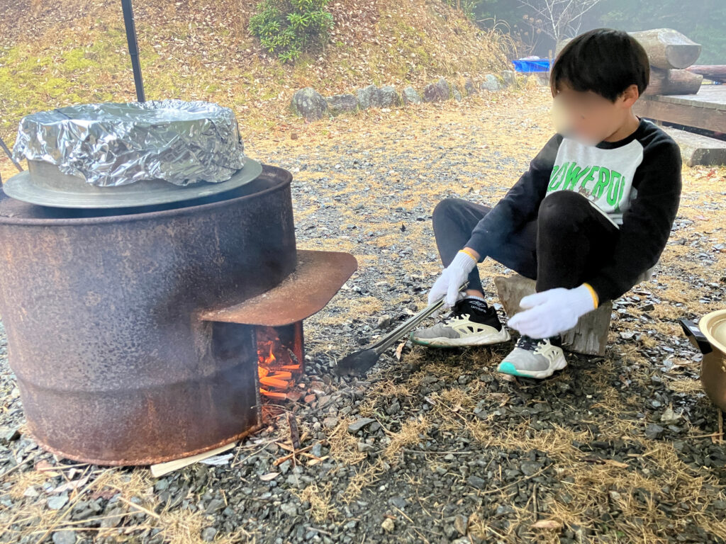 面白いのは、この植樹作業にはほとんど参加せず、自分の遊びを貫いていた子たちです。登場したスコップを使ってただひたすら穴を掘る子、カエル探しへ旅立つ子、火起こしに夢中になる子。