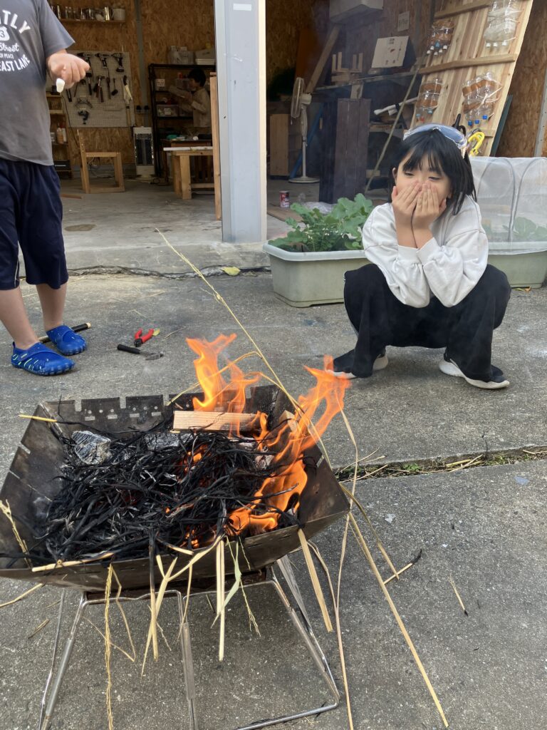 やはり目を引いたのは、子どもたちが、着火剤なし、大人の手伝いなしで火を起こせるようになっていたことでした。燃えそうな材料を自分たちで探し、燃えやすいように組み立て、メタルマッチで着火する。